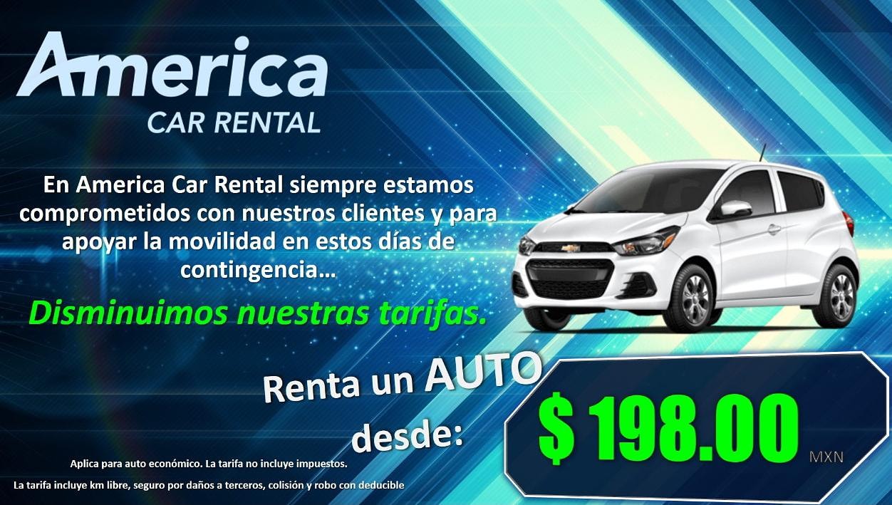 . America Car Rental Guadalajara offers rates with Coverage Included 0 Deductible Assistance and Free Milage. No Credit Card Required. America Car Rental guarantees the best car rental experience in the top tourist destinations in Mexico.